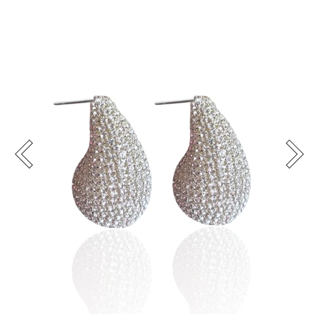 Brinco gota grande cravejado com zircônias banhado a prata. Sofisticado, brilhante e perfeito para eventos e ocasiões especiais.