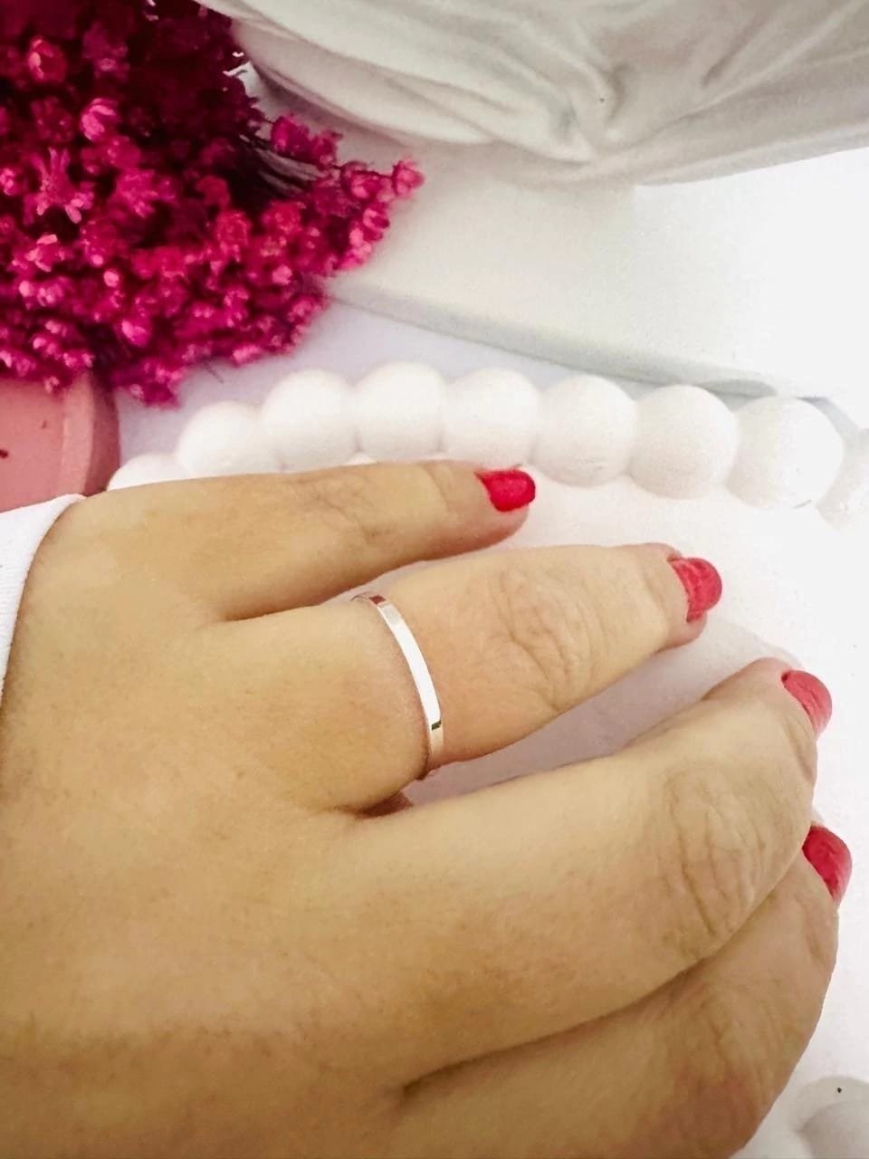 Anel minimalista aro fino banhado a prata. Delicado, elegante e perfeito para compor looks femininos com sofisticação.