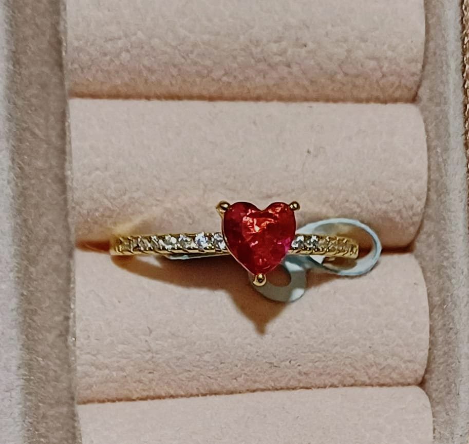 Anel solitário com zircônia coração e microzircônias banhado a ouro. Romântico, elegante e perfeito para momentos especiais.