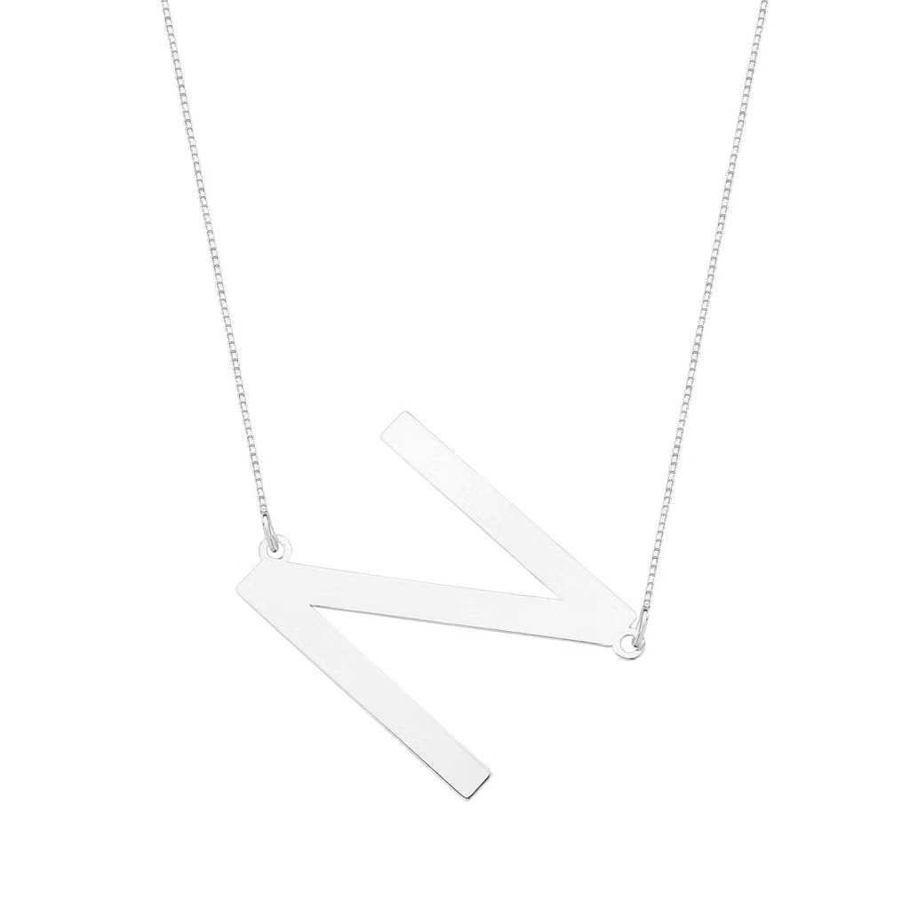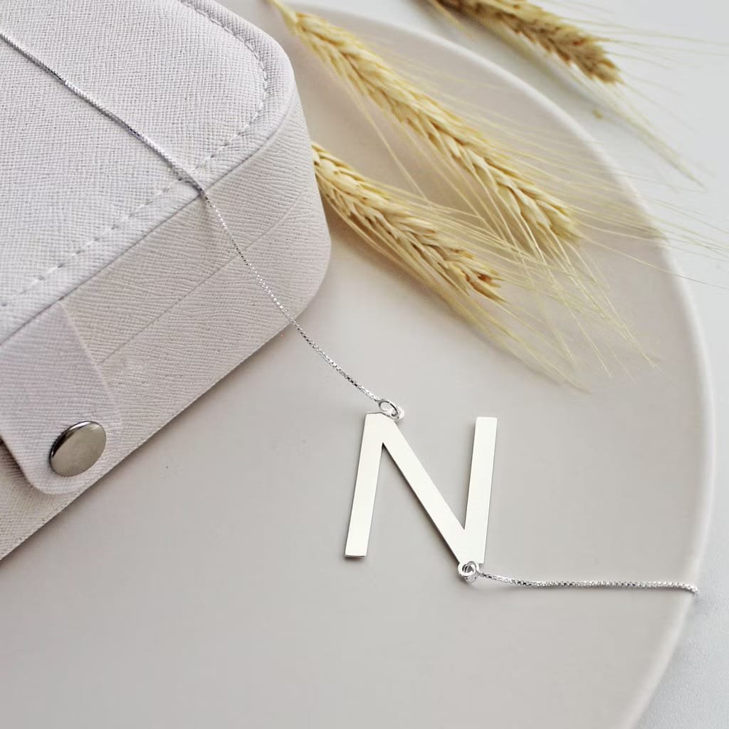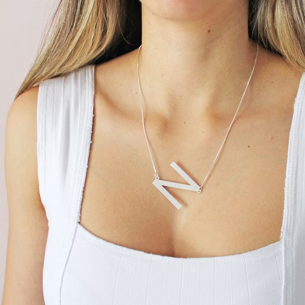 Colar letra inicial grande banhado a prata. Moderno, elegante e perfeito para quem ama acessórios personalizados com significado.