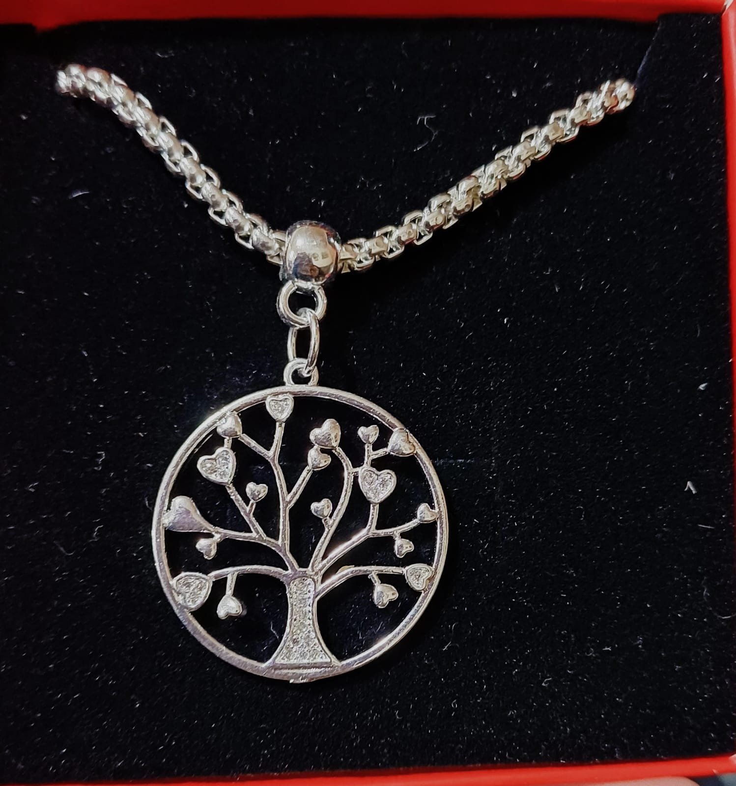 Colar veneziana com pingente árvore da vida com zircônias nas folhas e em volta com formato de coração banhado a ouro