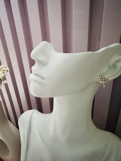 Brinco cruz pequeno frutacor, disponível em prata ou ouro. Delicado, moderno e perfeito para iluminar qualquer look.