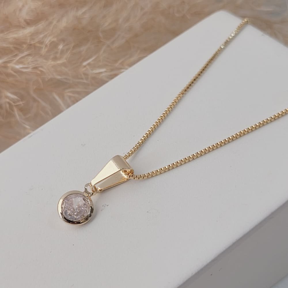Colar veneziana com pingente ponto de luz pequeno em zircônia com desenho em losango banhado a ouro