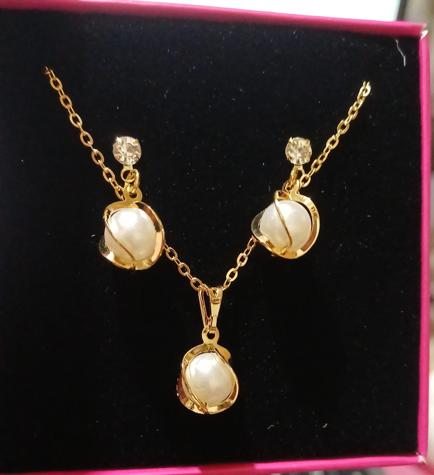 Conjunto pérola banhado a ouro. Elegante, atemporal e perfeito para mulheres que amam acessórios clássicos e sofisticados.