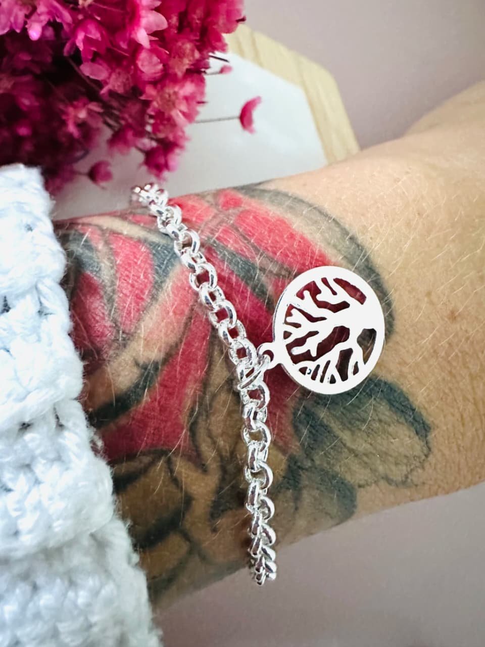 Pulseira Árvore da Vida banhada a prata. Acompanha embalagem presenteável e garantia 6 meses. Delicada, elegante e cheia de significado. R$ 45.